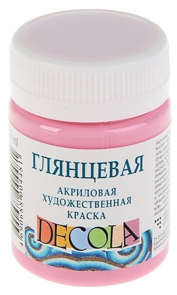 Краска акриловая художественная Decola, 50мл, глянцевая, баночка, розовый