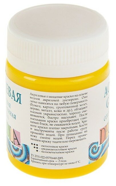 Краска акриловая художественная Decola, 50мл, глянцевая, баночка, желтый средний