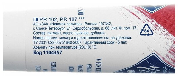 Отзывы на Краска масляная художественная «Мастер-класс», 46 мл, венецианская красная, в тубе № 10