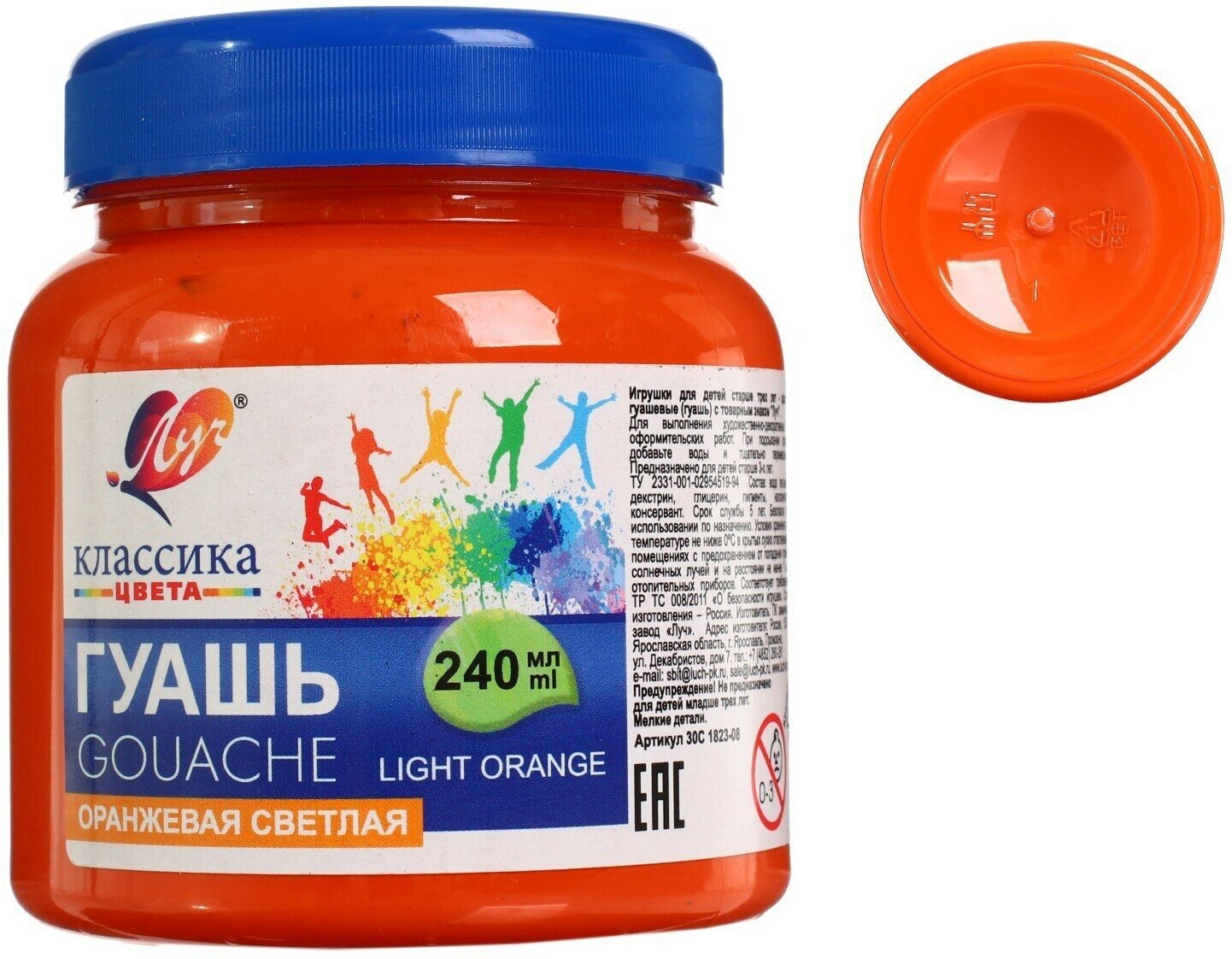 Гуашь "Луч" Классика цвета, 240 мл, оранжевая светлая информация: