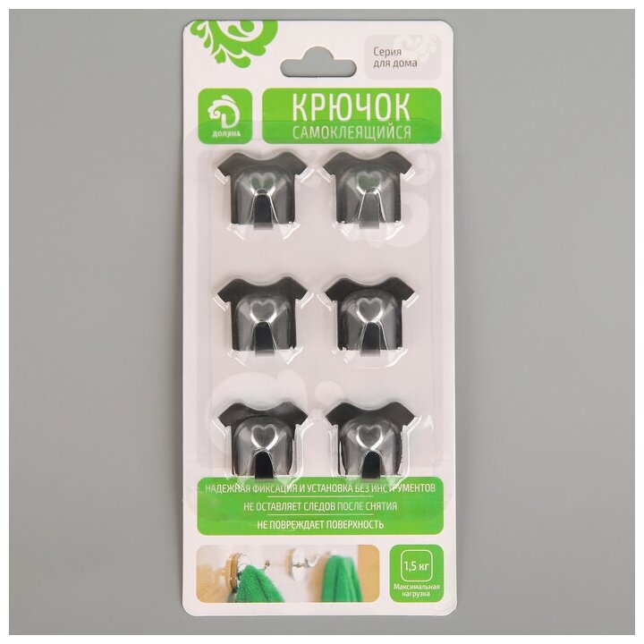 Крючки на липучке Доляна "Футболка", 6 шт, металлические (4686334) информация: