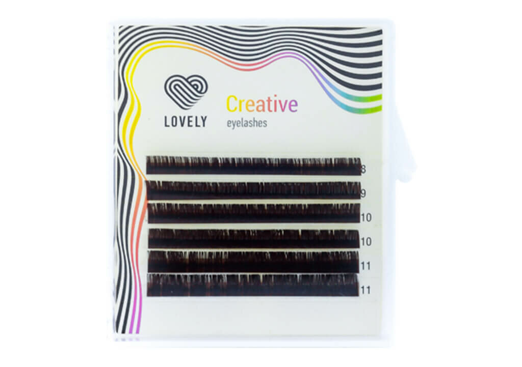 LOVELY Ресницы темный шоколад MINI - 6 линий, MIX (изгиб D; толщина 0,07; длина 8-11) информация: