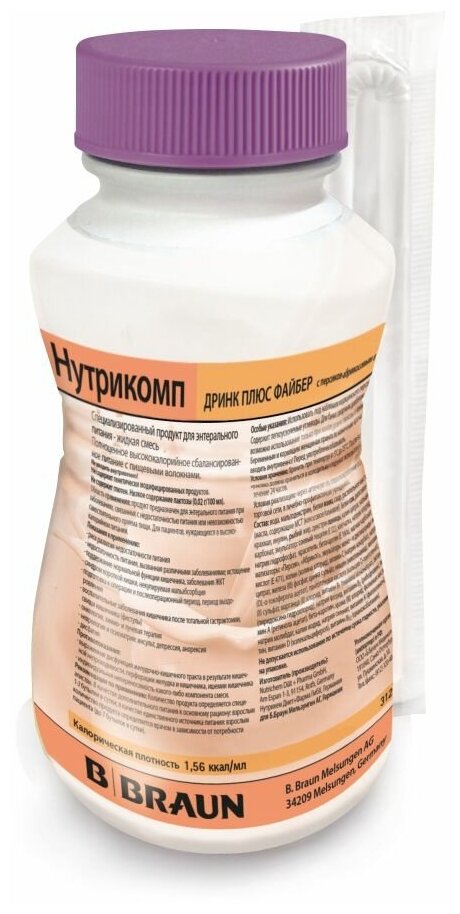 BBraun Нутрикомп Дринк Плюс Файбер с персиково-абрикосовым вкусом, 200 мл 580 ₽