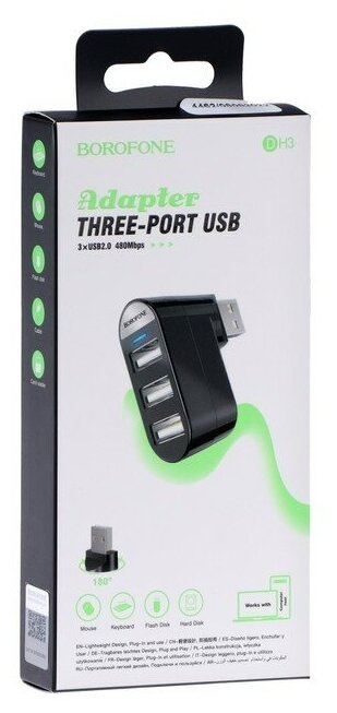 Хаб USB-концентратор Borofone DH3 3xUSB 2.0 480Mbps информация:
