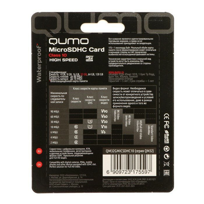 Отзывы на Карта памяти QUMO MicroSD, 32 Гб, SDHC, класс 10, с адаптером SD