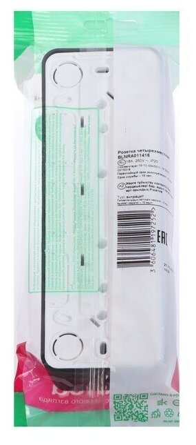 Розетка BLANCA наружная четырехпостовая, с заземлением, со шторками, с изолирующей пластиной, 16А, (BLNRA011415)