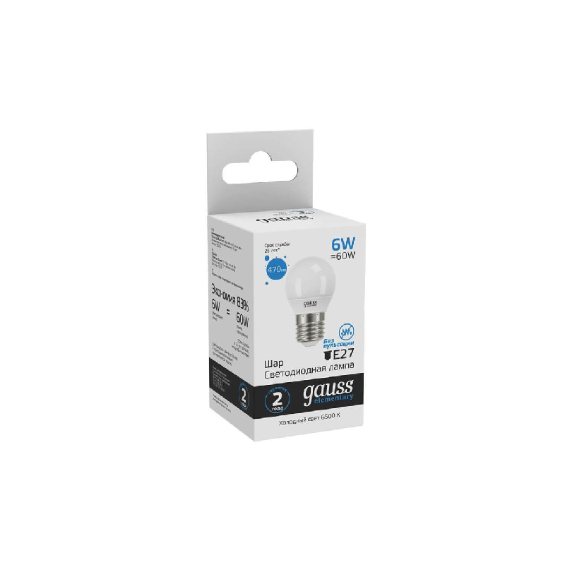 Отзывы на Лампа светодиодная Elementary 6Вт шар 6500К холод. бел. E27 470лм GAUSS 53236