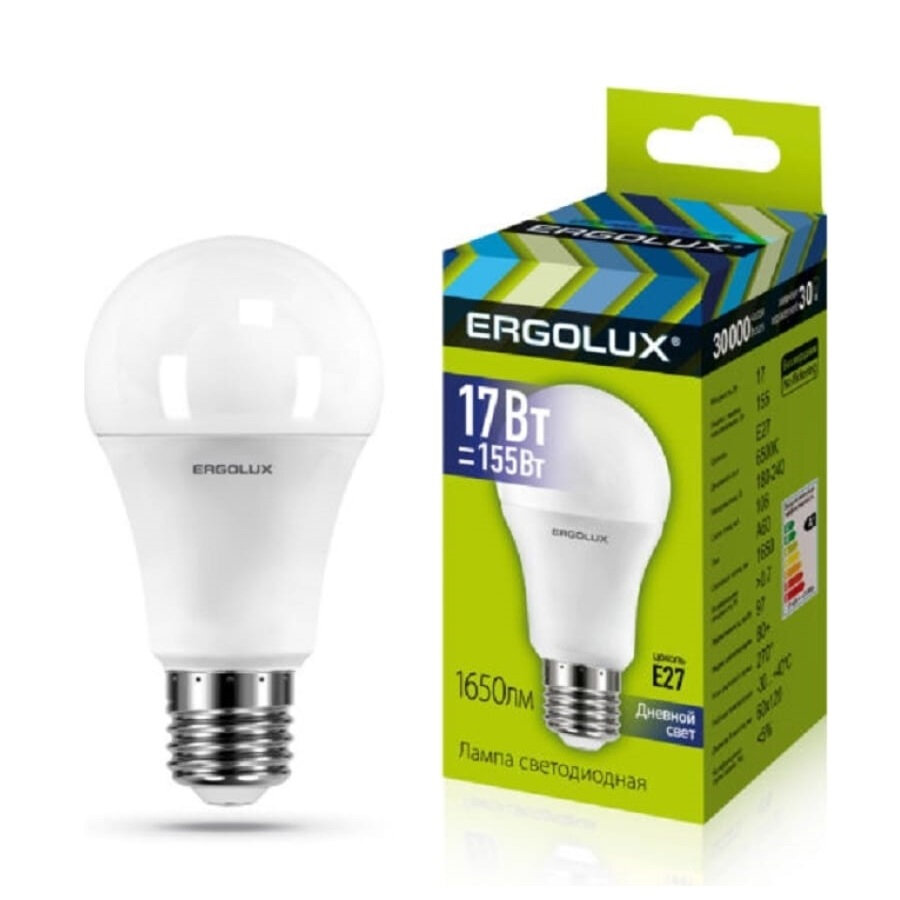 Лампа светодиодная Ergolux А60 17W E27 6500K информация: