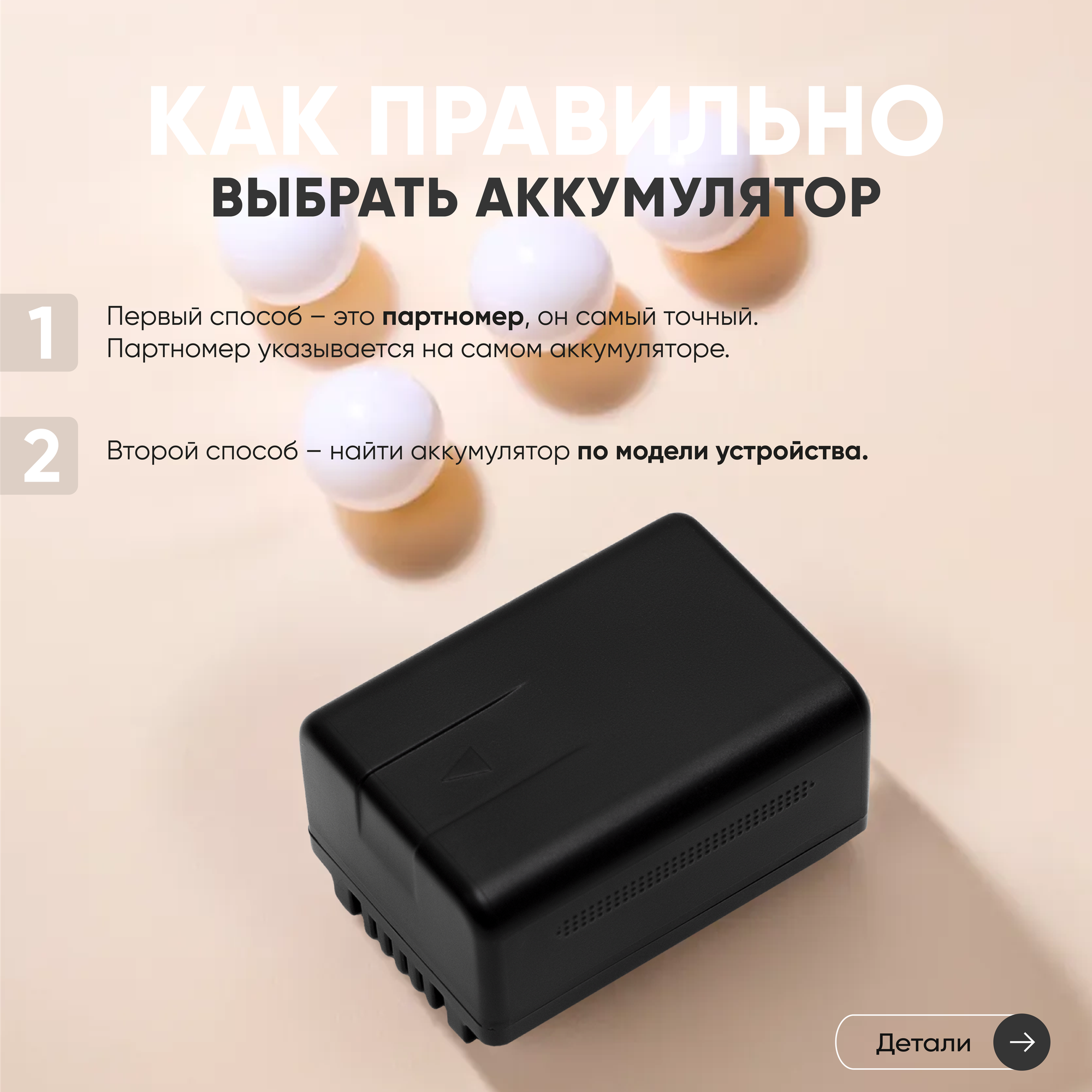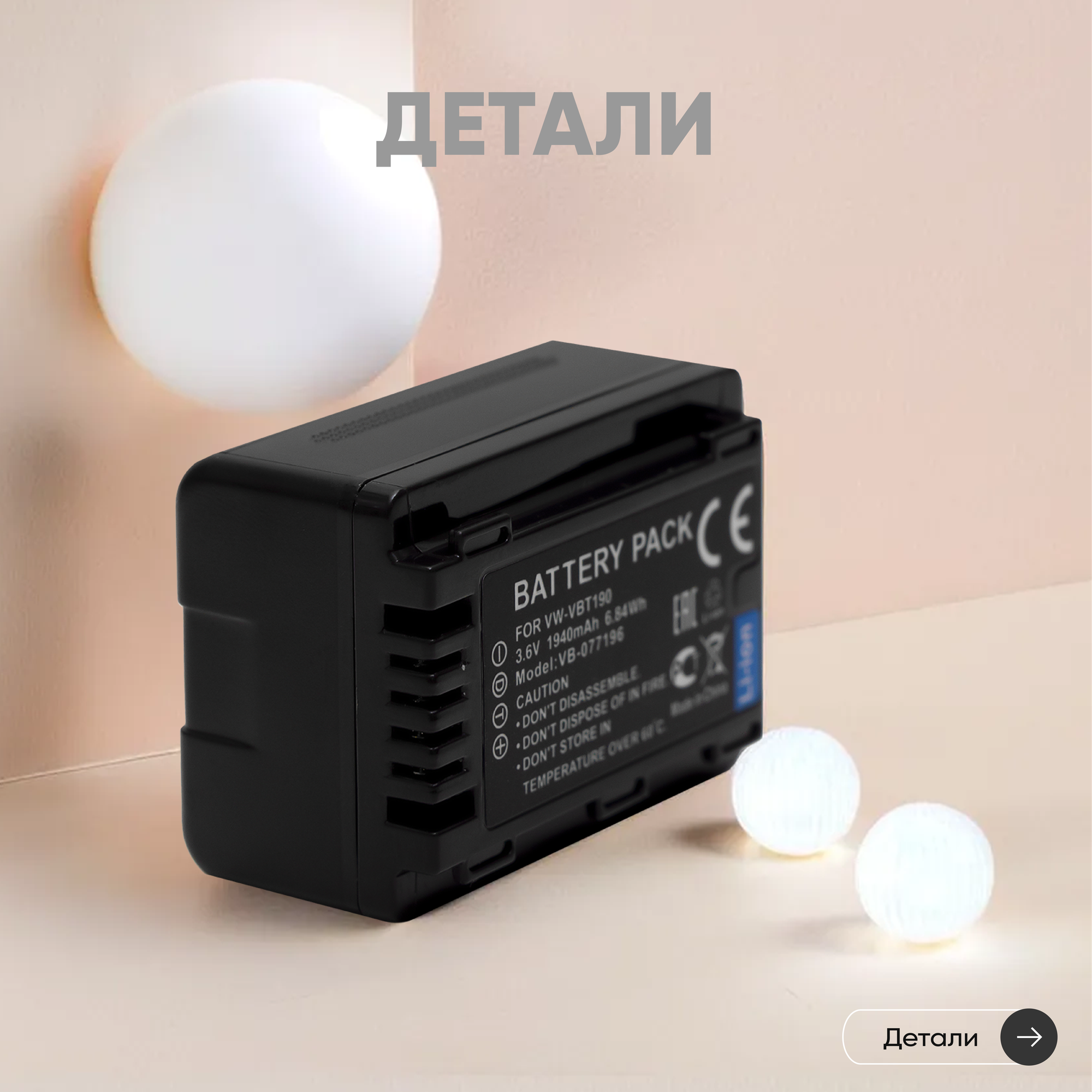 Отзывы на Аккумулятор (АКБ, аккумуляторная батарея) VW-VBT190 для видеокамеры Panasonic HC-V110, V130, V160, V201, 3.6В, 1950мАч, Li-Ion