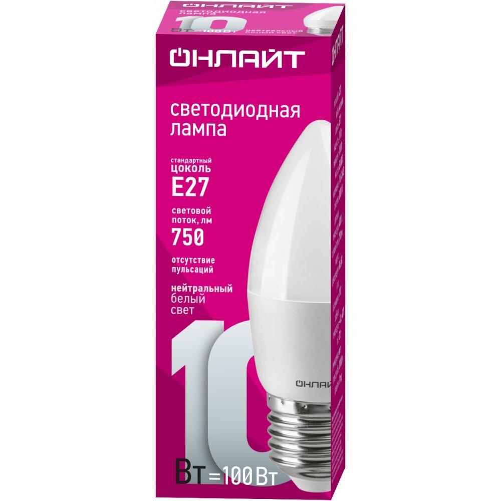 Светодиодная лампа свеча онлайт 61 960 OLL-C37-10-230-4K-E27-FR, цена за 1 шт.