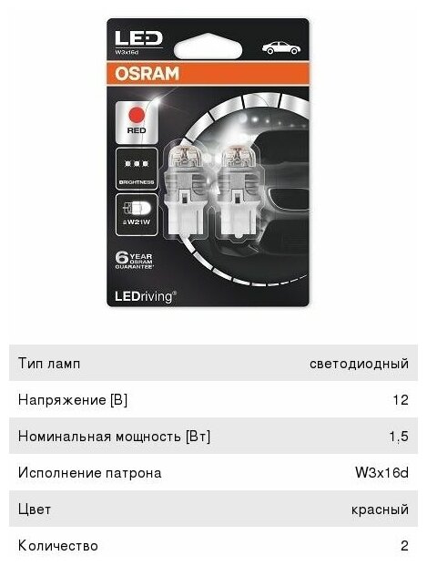 10 цен на osram 7905r02b 7905r-02b_к-кт ламп ledriving! 2шт. (w21w) 12v 1.5w w3x16d premium/ красный\