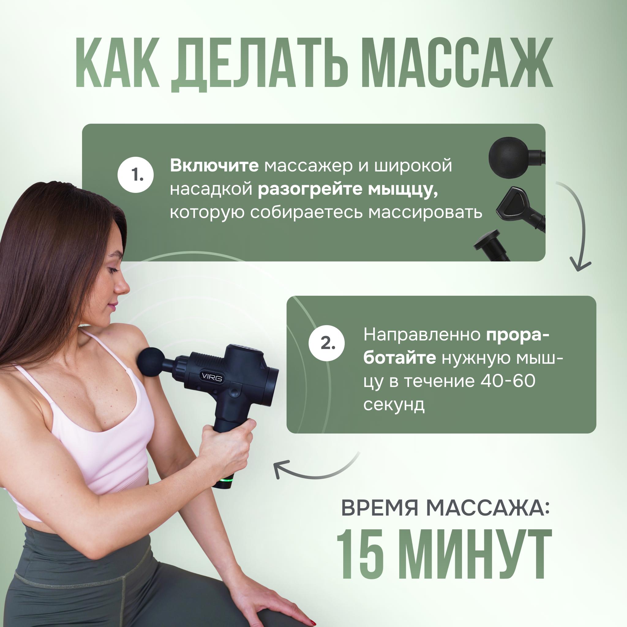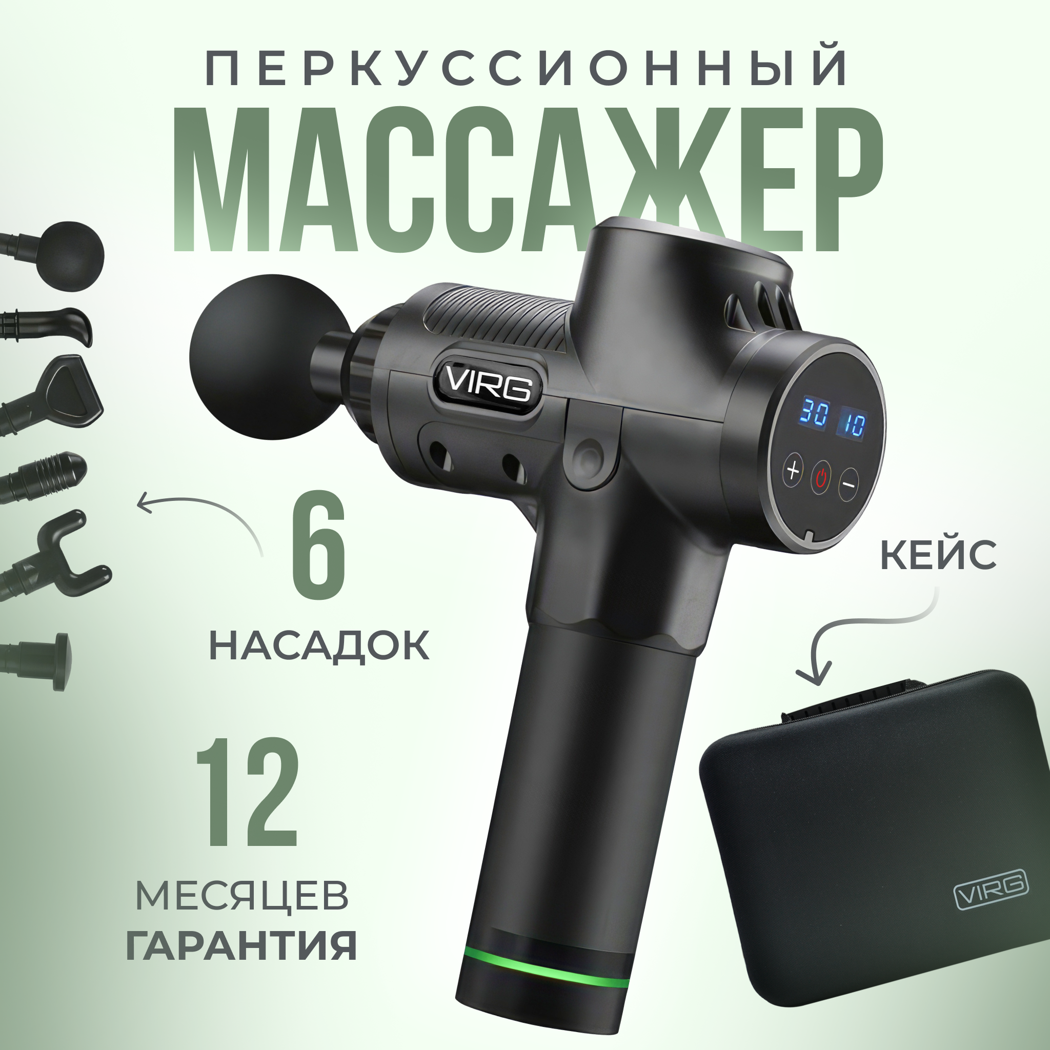 Отзывы на VIRG Перкуссионный массажный пистолет, электрический массажер для тела, спины, шеи, и ног, 6 насадок, вибромассажер Black New