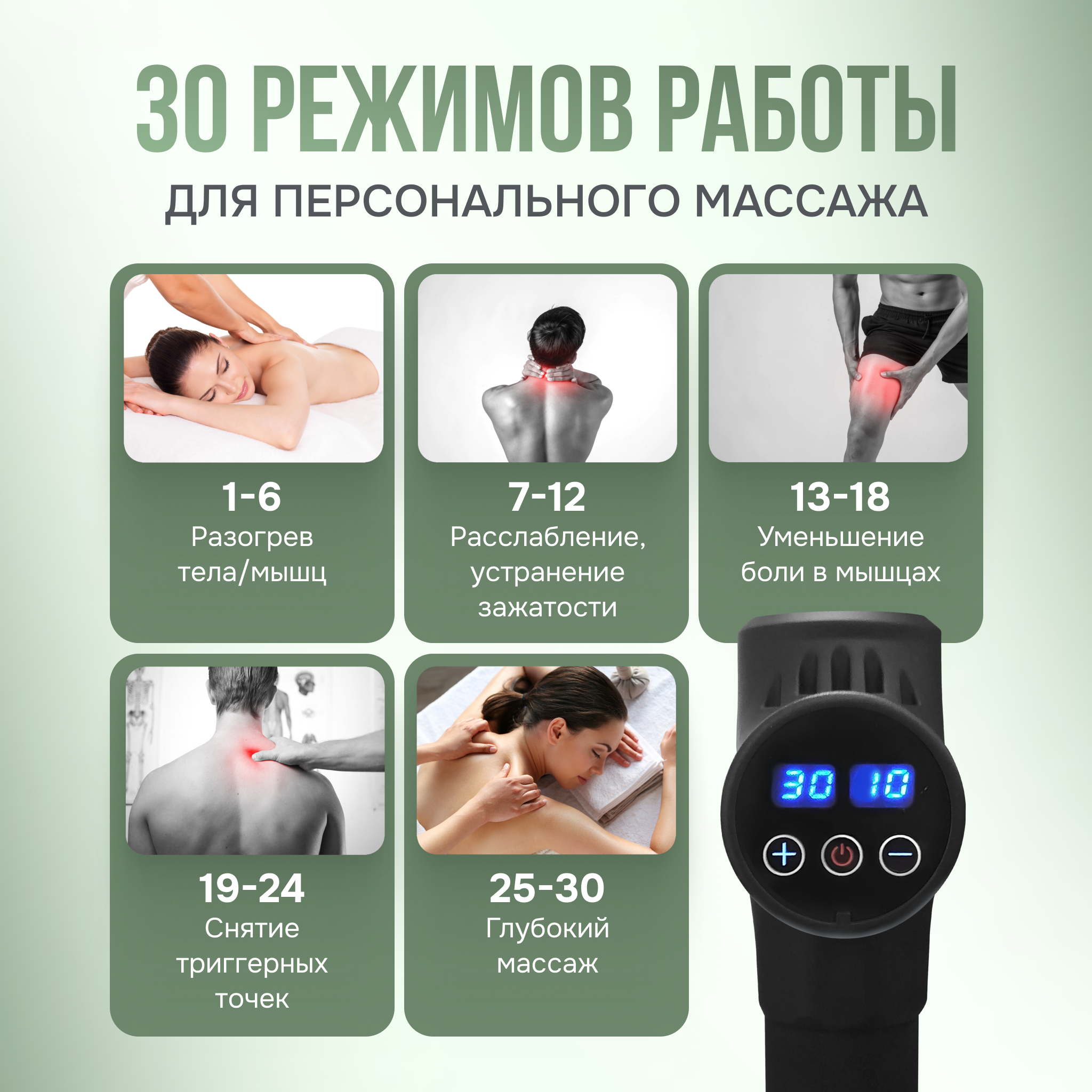 | Особенности | беспроводной / дисплей / регулировка интенсивности массажа |
