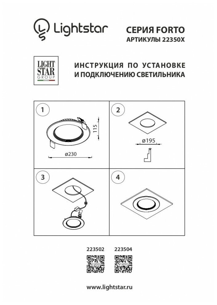 Встраиваемый светильник Light Star Forto 223504 3 009 ₽