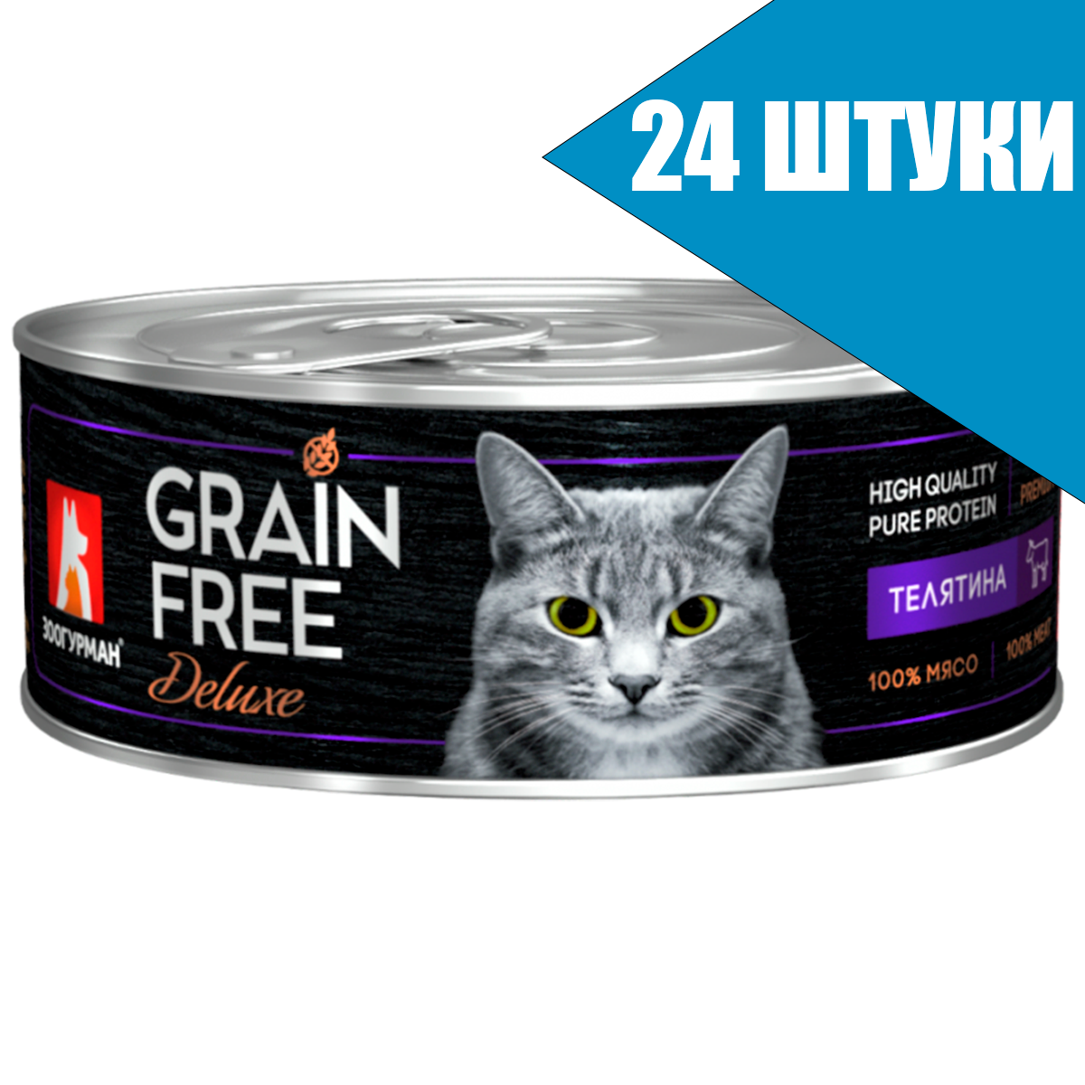 10 цен на Корм влажный Зоогурман GRAIN FREE Deluxe для кошек, с телятиной 24шт*100г