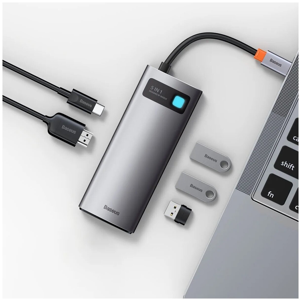 10 цен на Хаб USB-концентратор Baseus Metal Gleam Series 5-in-1 Multifunctional Type-C HUB Docking Station Gray (CAHUB-CX0G)