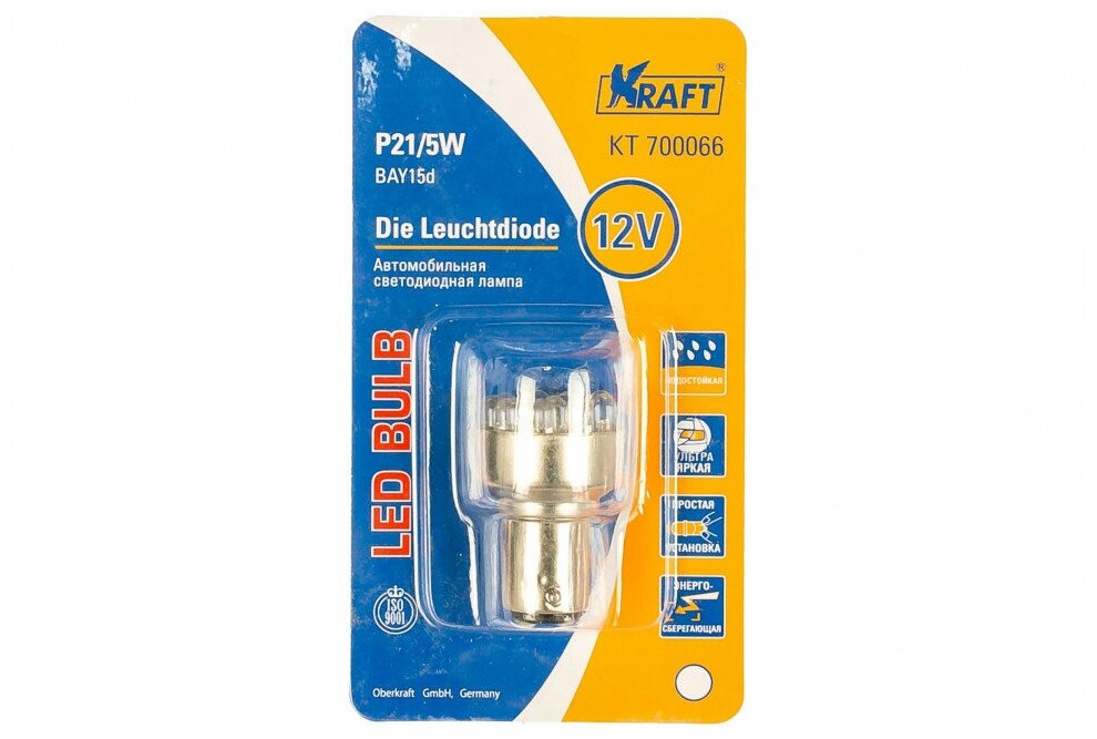 Лампа автомобильная светодиодная KRAFT KT 700066, P21/5W, 12В, 21Вт, 1шт 290 ₽