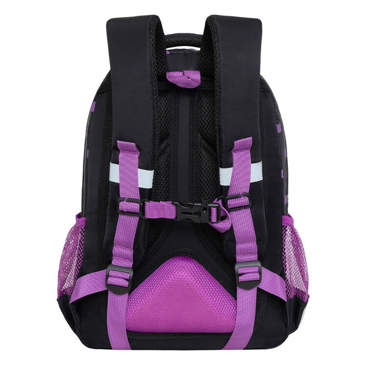 Рюкзак 27*40*20см, 2 отделения, 4 кармана, анатомическая спинка, черный-лавандовый