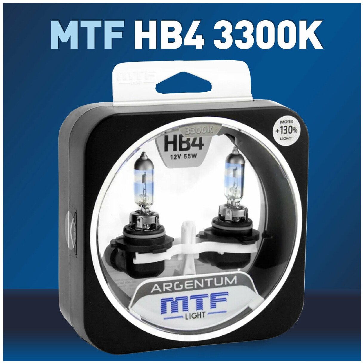 Комплект галогенных ламп HB4 MTF light series Argentum со специальным инновационным покрытием и нить накаливания повышенной эффективности обеспечивают прибавление света на 130% (3500K) комп.2шт.
