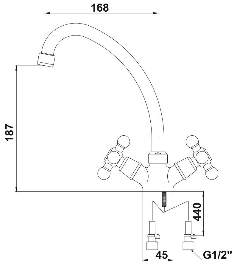Смеситель Kaiser Carlson Eco 11063, кухня, крест, кер.