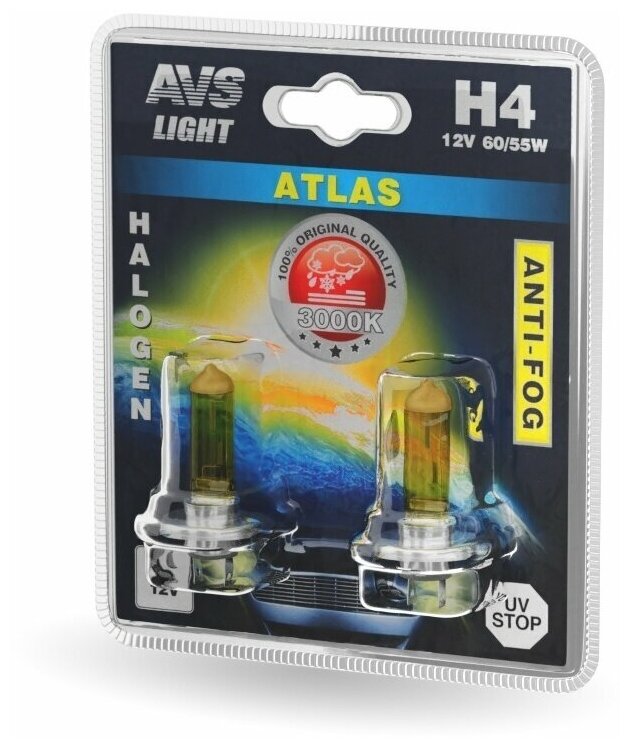 Галогеновые лампы AVS ATLAS ANTI-FOG/ желтый H4.12V.60/55W (блистер, 2 шт.) информация: