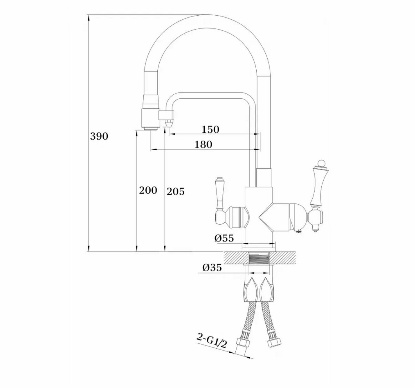 Смеситель для кухни GANZER GZ77025GH с подключением к фильтру питьевой воды