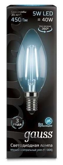 Отзывы на Лампа светодиодная Gauss LED Filament Candle E14 5W 4100K прозрачная 103801205