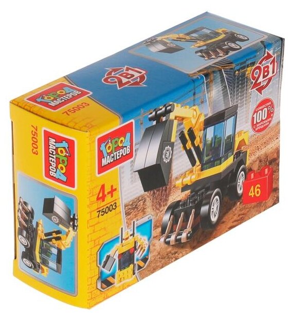 10 цен на Конструктор экскаватор 2в1, 46 деталей Город мастеров