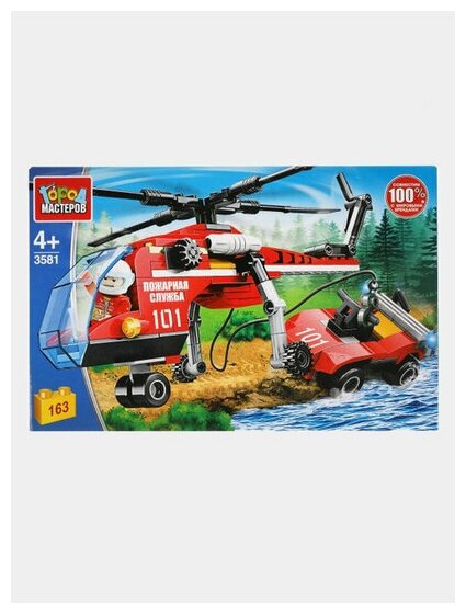 10 цен на Конструктор Город мастеров Пожарный вертолёт вытаскивает машину, 163 детали