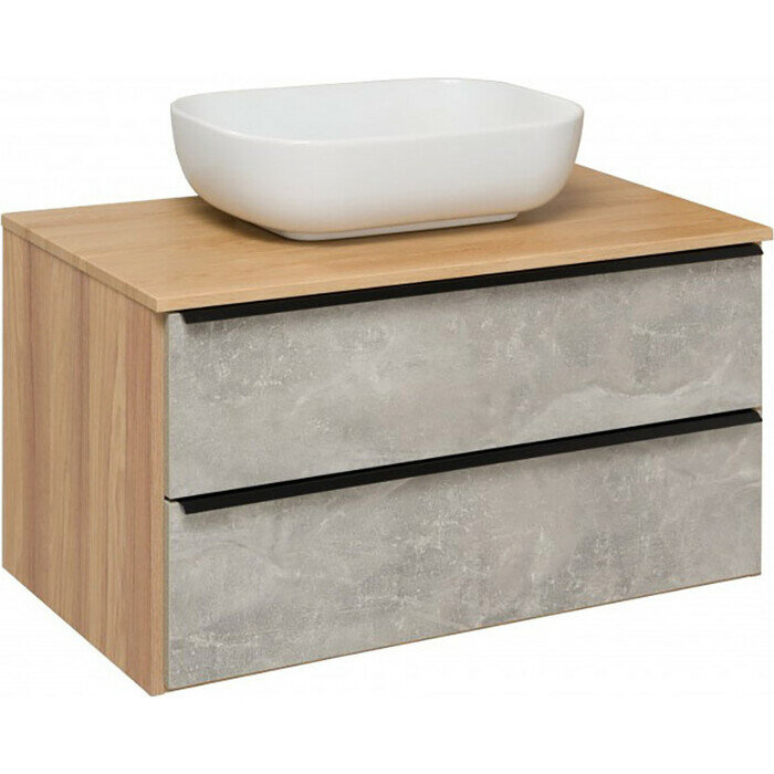 RUNO Тумба Мальта 85 серый/дуб под умывальник Moduo Square 50/Гамма 56 00-00001100