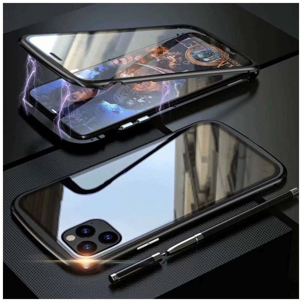 Чехол-бампер MyPads для iPhone 11 Pro Max магнитный из закаленного стекла и металла с двухсторонней прозрачной крышкой металлический защитный противоударный черный