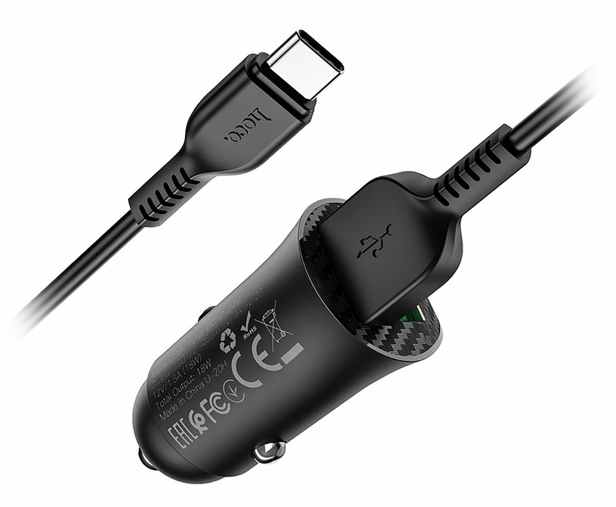 Автомобильное зарядное устройство Hoco Z39 Farsighted + кабель USB Type-C, 18 Вт, черный