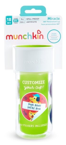 Поильник-непроливайка Munchkin Miracle 360 именной 266 мл 18 мес+ зелёный .
