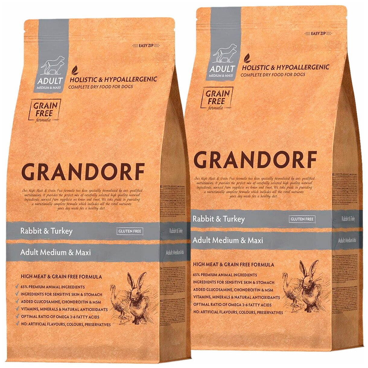10 цен на GRANDORF GRAIN FREE DOG ADULT MEDIUM & MAXI RABBIT & TURKEY беззерновой для взрослых собак средних и крупных пород с кроликом и индейкой (12 + 12 кг)