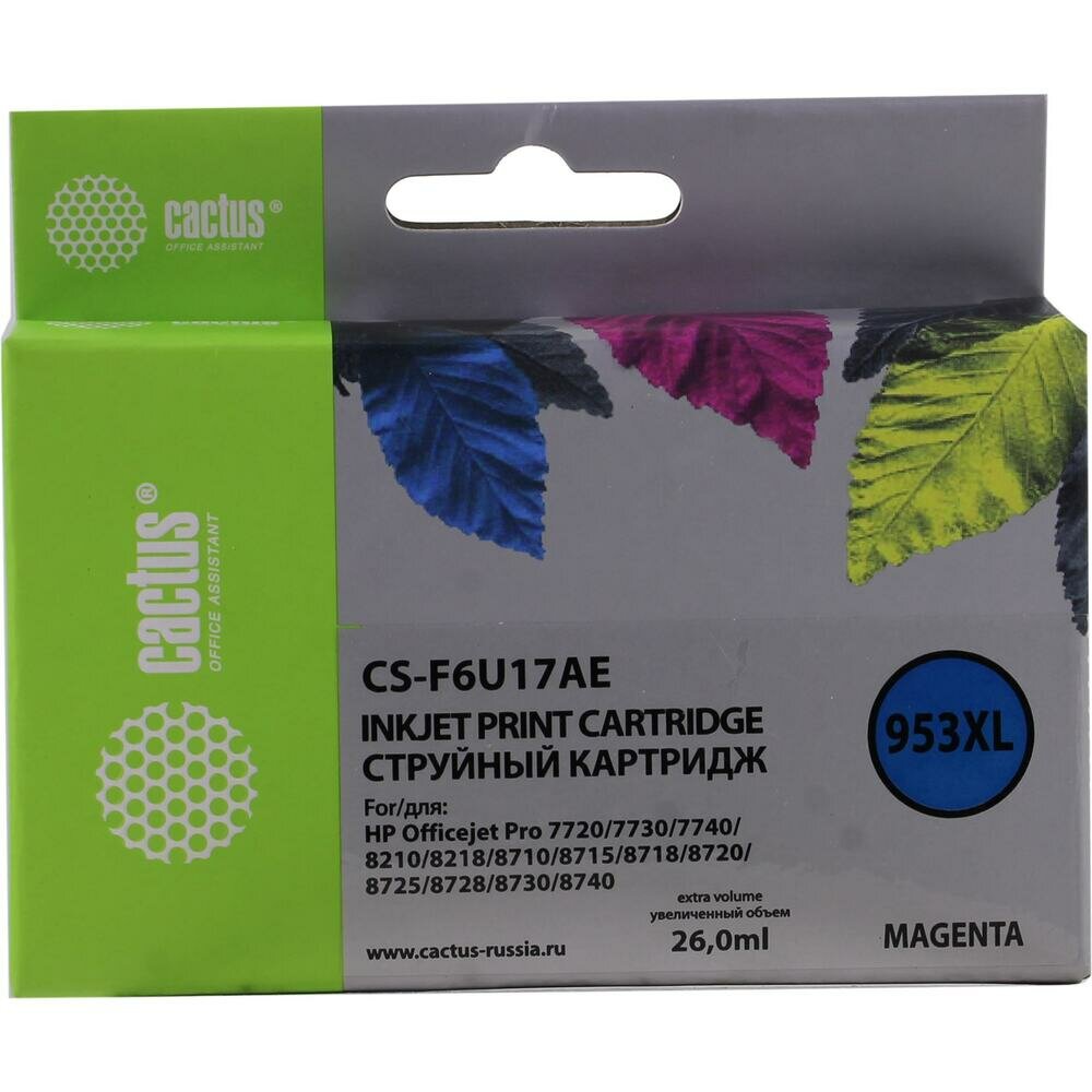 Струйный картридж Cactus CS-F6U17AE 953XL пурпурный (26мл) для HP OJ Pro 7740/8210/8218/8710/8715