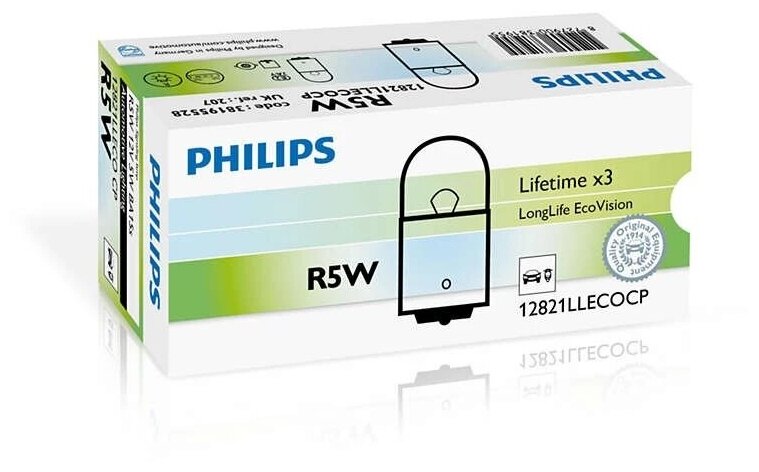 Лампа подсветки R5W 12V 5W "PHILIPS" (габаритные огни, LongLife EcoVision) информация:
