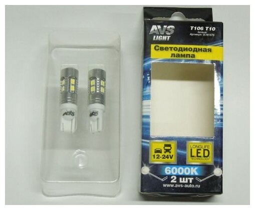 T106 T10/Белый/(W2,1X9,5D) 10 Smd 2835 12-24V, Блистер 2 Шт., Шт AVS арт. A78197S