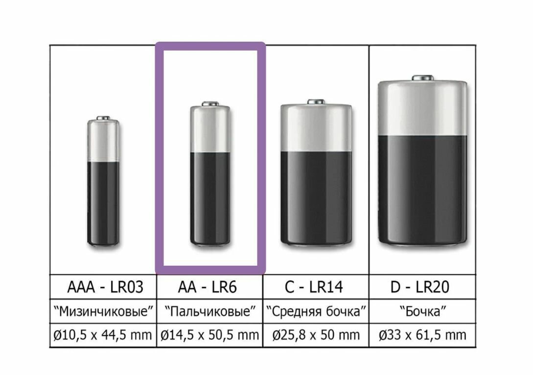 | Типоразмер | AA (R6 / LR6 / FR6 / HR6 / ZR6) |