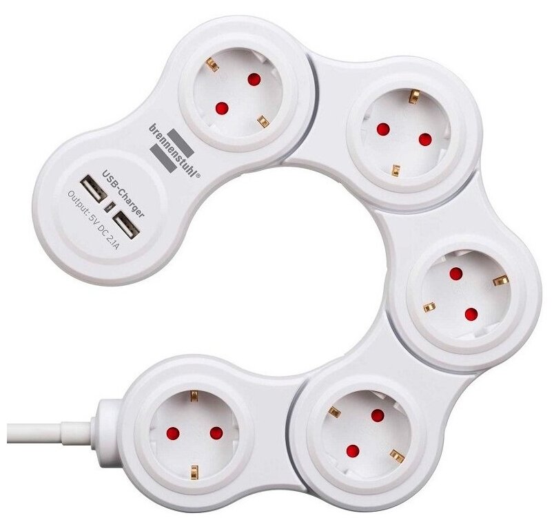 10 цен на Удлинитель 1,4 м Brennenstuhl Vario Power гибкий, 5 розеток, 2 USB, белый 1155350210