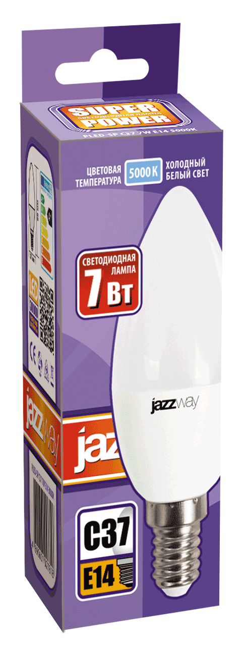 Лампа светодиодная PLED-SP 7Вт C37 свеча 5000К холод. бел. E14 560лм 230В JazzWay 1027832-2 информация: