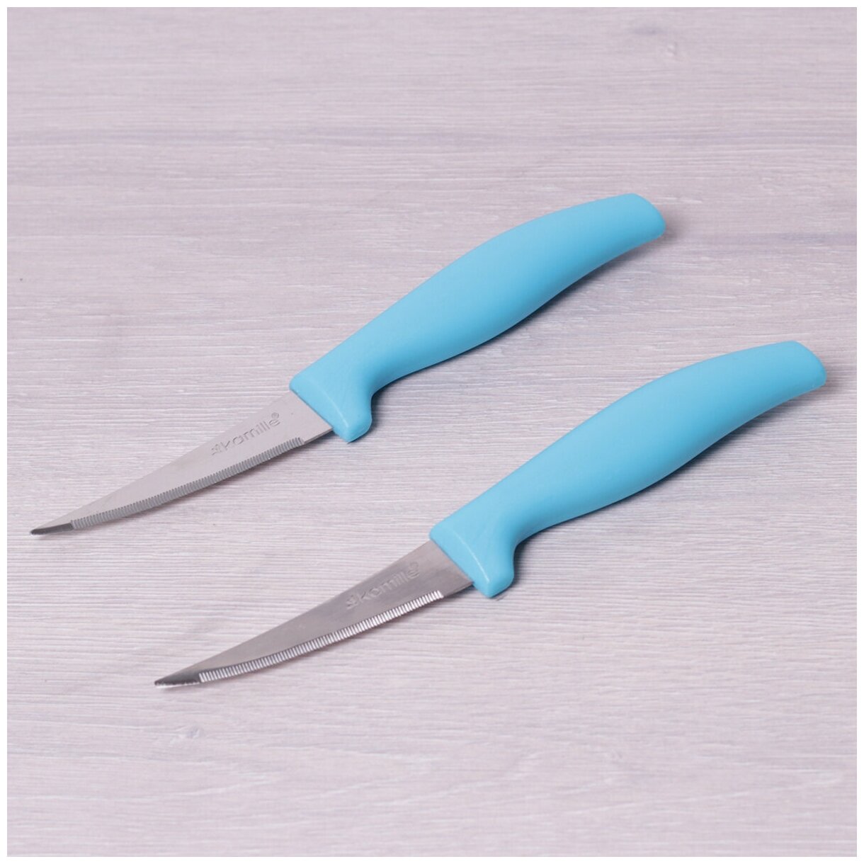 Ножи кухонные 2 шт. из нержавеющей стали Kamille КМ 5310 с зубчиками (5310 / голубой)