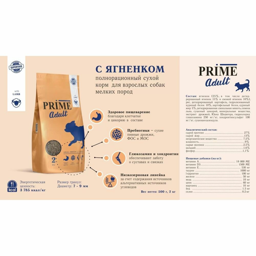 PRIME ADULT SMALL ягненок 2кг для собак мелких пород с 1г информация:
