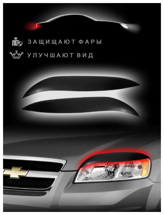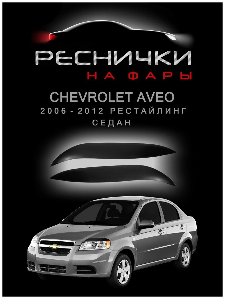 Отзывы на Реснички на фары Chevrolet Aveo седан 2006–2012 накладки на Шевроле Авео – 2шт.