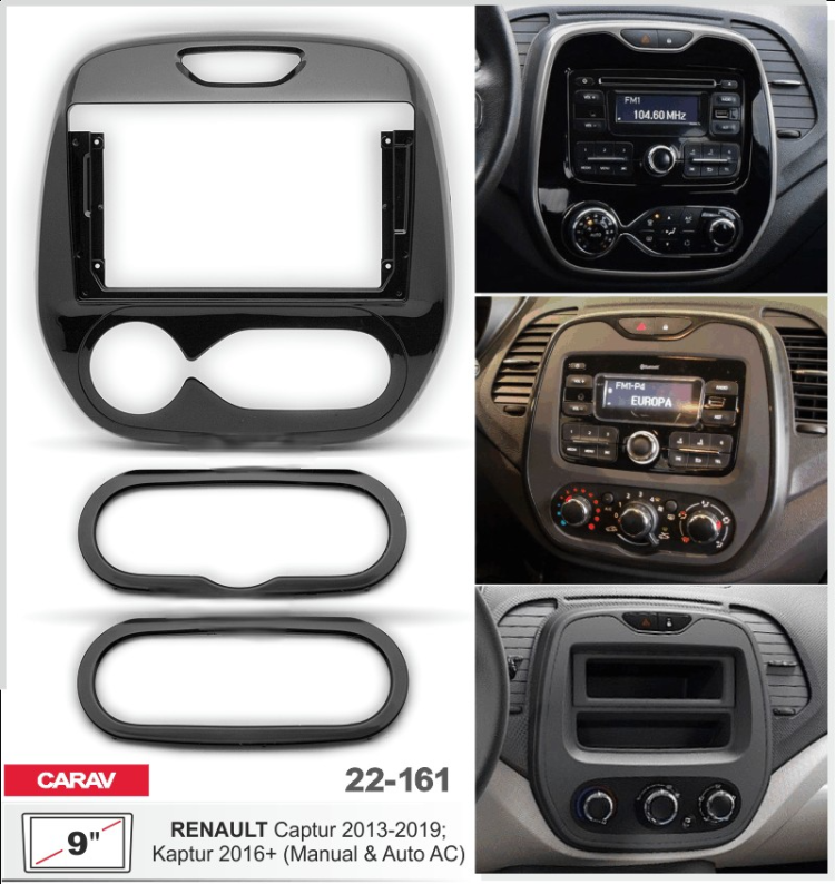 Carav 22-161 | 9" переходная рамка Renault Kaptur 2016+, Captur 2012-2017 (manual/auto AC) информация: