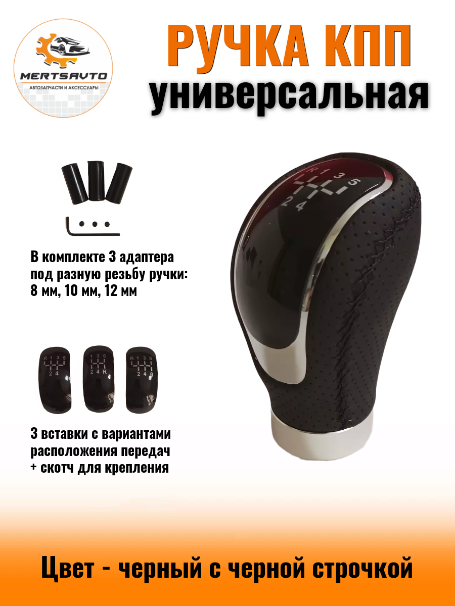 Ручка коробки переключения передач (КПП) универсальная с черной строчкой информация: