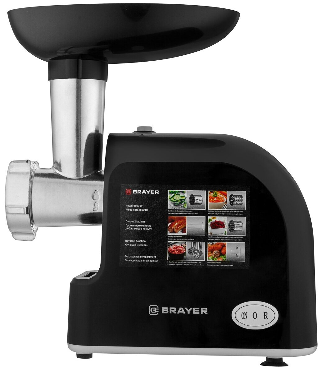 Мясорубка Brayer BR1603BK , 1500 Вт, реверс, насадки кеббе, колбасы, овощи, 2 диска, отсек для хранения