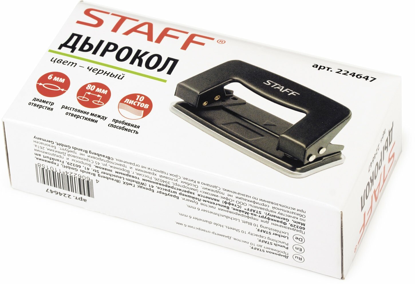 Дырокол металлический STAFF "EVERYDAY,", до 10 листов, без линейки, черный, 224647 (цена за 1 ед.товара)