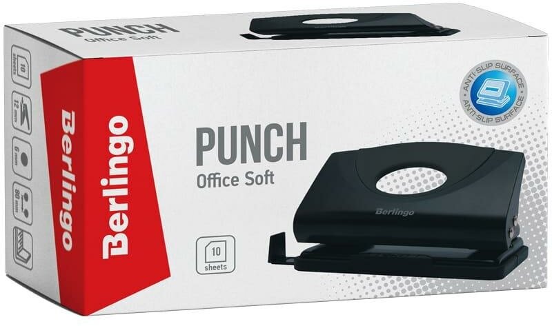 Дырокол Berlingo Office Soft, до 10 листов, линейка, черный (DDp_10161)