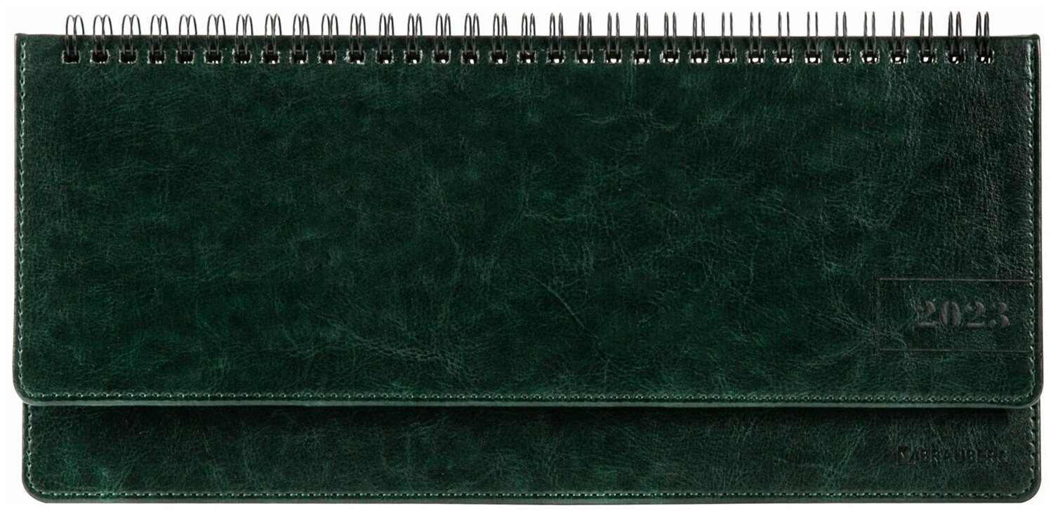 Планинг (ежедневник-планер) датированный настольный горизонтального формата на 2023 год формата 305х140 мм Brauberg Imperial, под кожу, зеленый