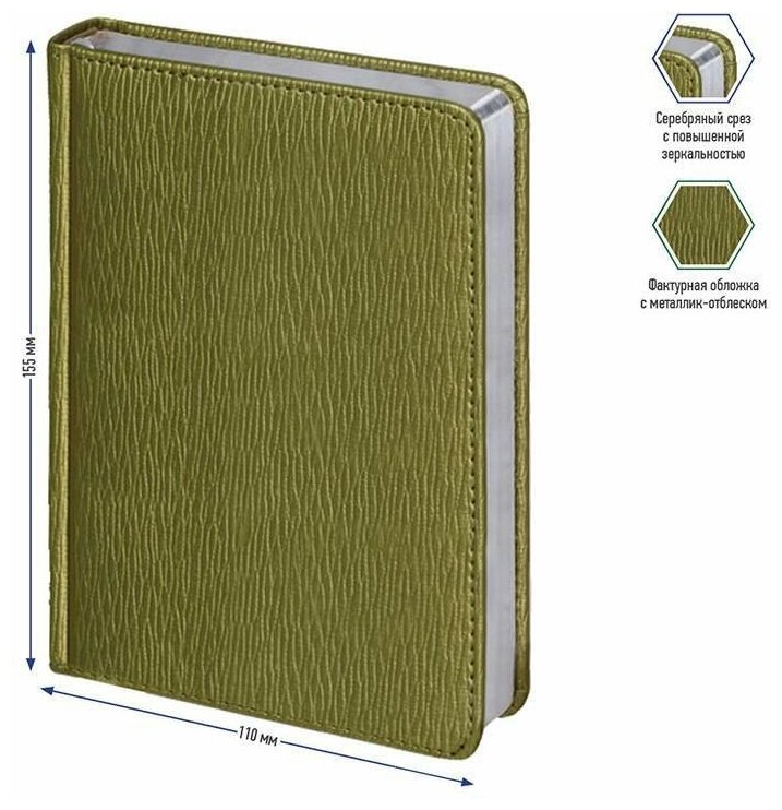 Ежедневник недатир. A6, 160л., кожзам, Berlingo "Starlight", серебр. срез, салатовый информация: